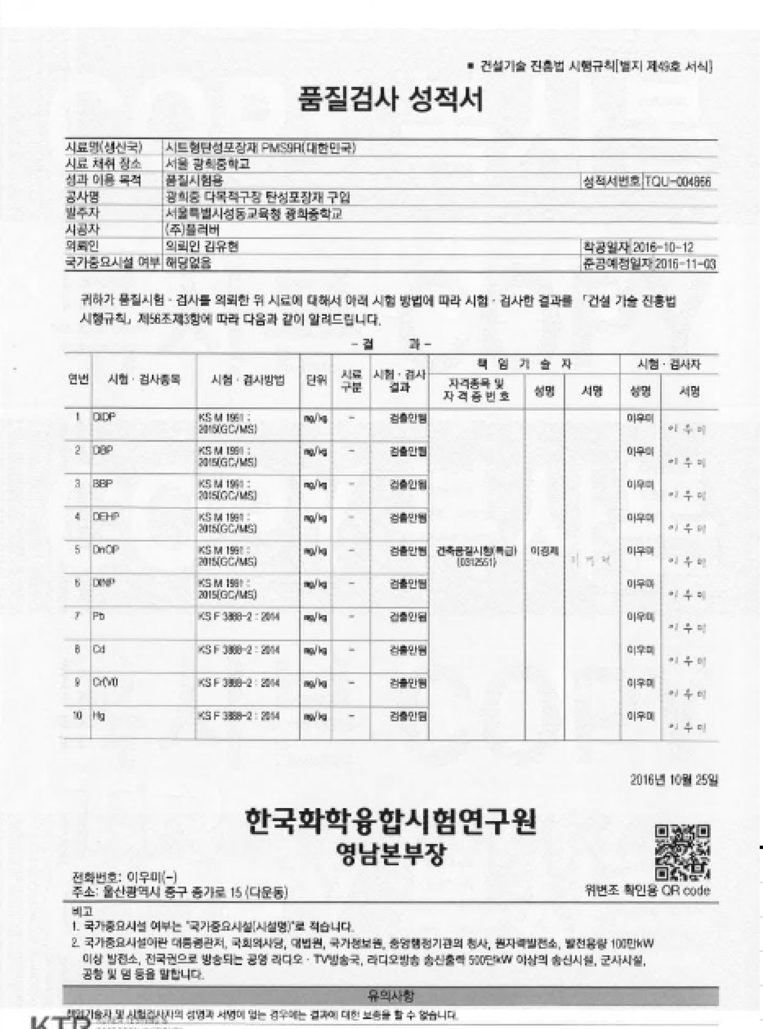 롤시트 프탈레이트 롤시트 Pahs, Tvocs 롤시트 유해중금속 세종시 소정초(4대중금속,프탈레이트) 여수여고 4대중금속,프탈레이트 안산 반월초 4대중금속,프탈레이트 서울 광희중 4대중금속,프탈레이트 서울 성보고 4대중금속,프탈레이트